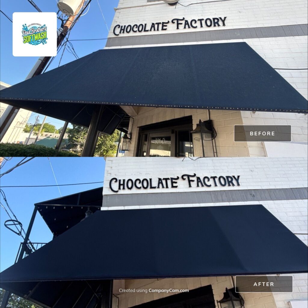Commercial awning cleaning in Asheboro and Greensboro is one of the easiest ways to improve the appearance of your business. Dirty awnings collect black streaks, algae, mildew, pollen, and traffic grime. Over time, that buildup can make even a great business look neglected.